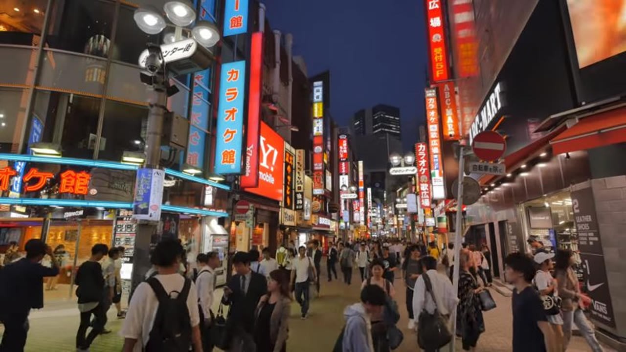 Captura de pantalla de ‘Walking in Tokyo Shibuya at night (Caminando de noche en Shibuya, Tokio)’, desde el canal de YouTube de Rambalac.